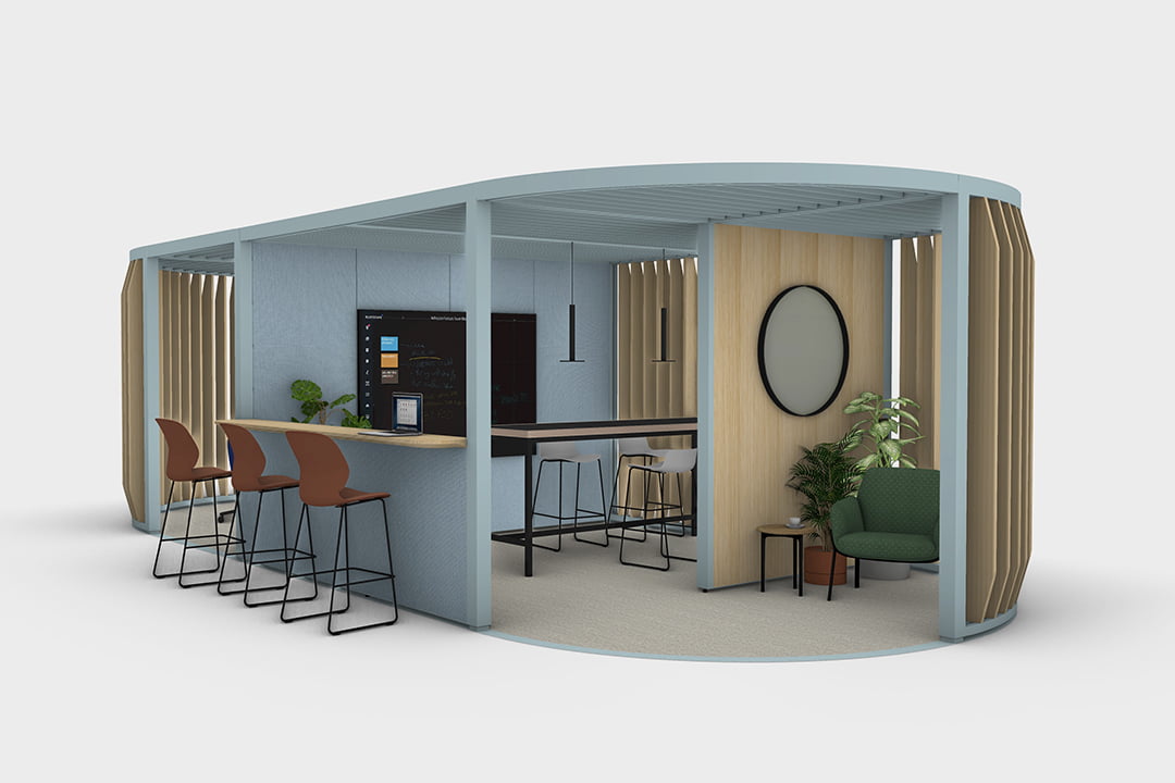 Leverage real estate in new ways to build spaces quickly, empowering employees to connect, collaborate, and focus. Pergola provides a series of bundled room solutions with a collection of individual parts and pieces that allow designers to easily specify their room size, degree of enclosure, function, and finishes.